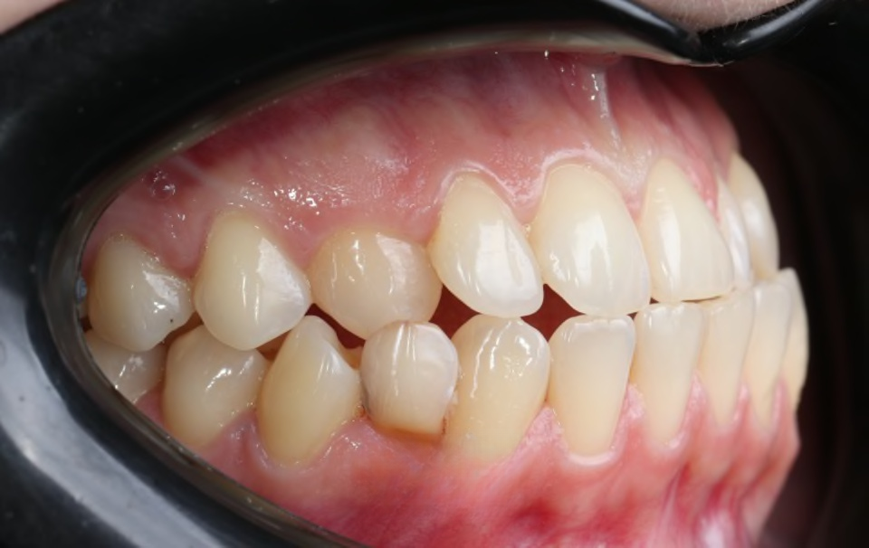 Из-за скопления частиц пищи между неправильно расположенными зубами